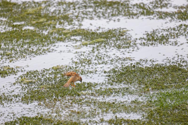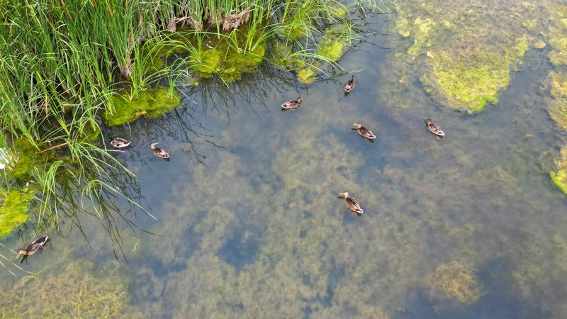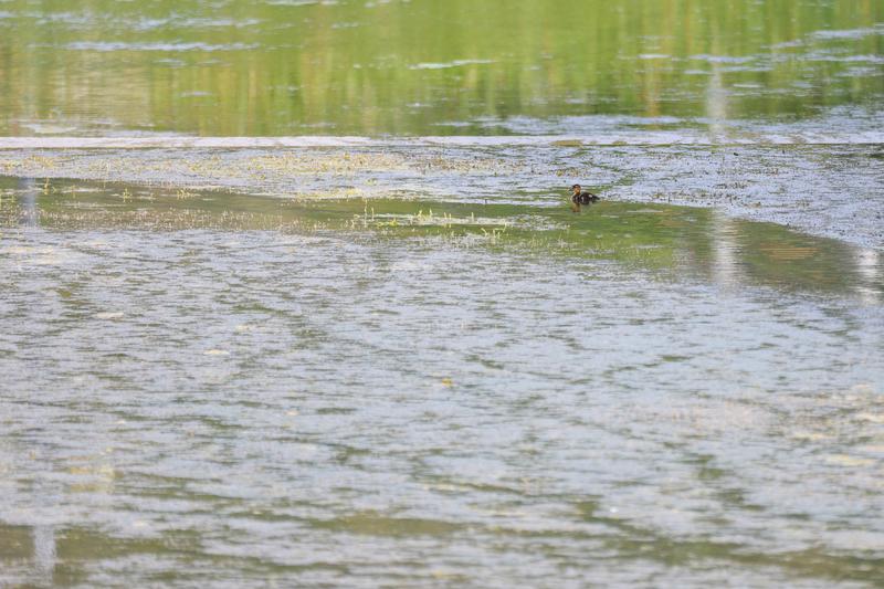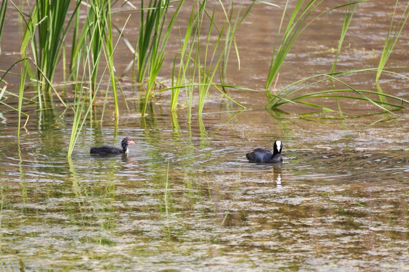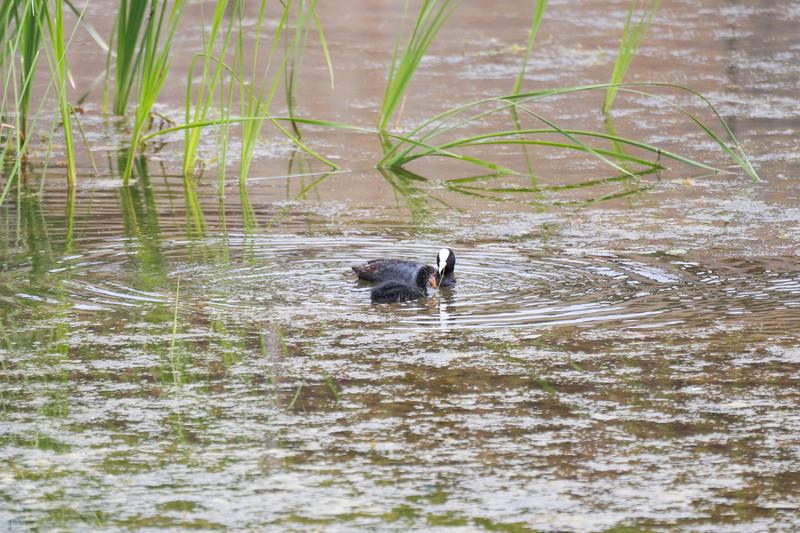 7月4日,记者在牛谷河拍到国家二级保护动物白骨顶带着宝宝觅食的画面。