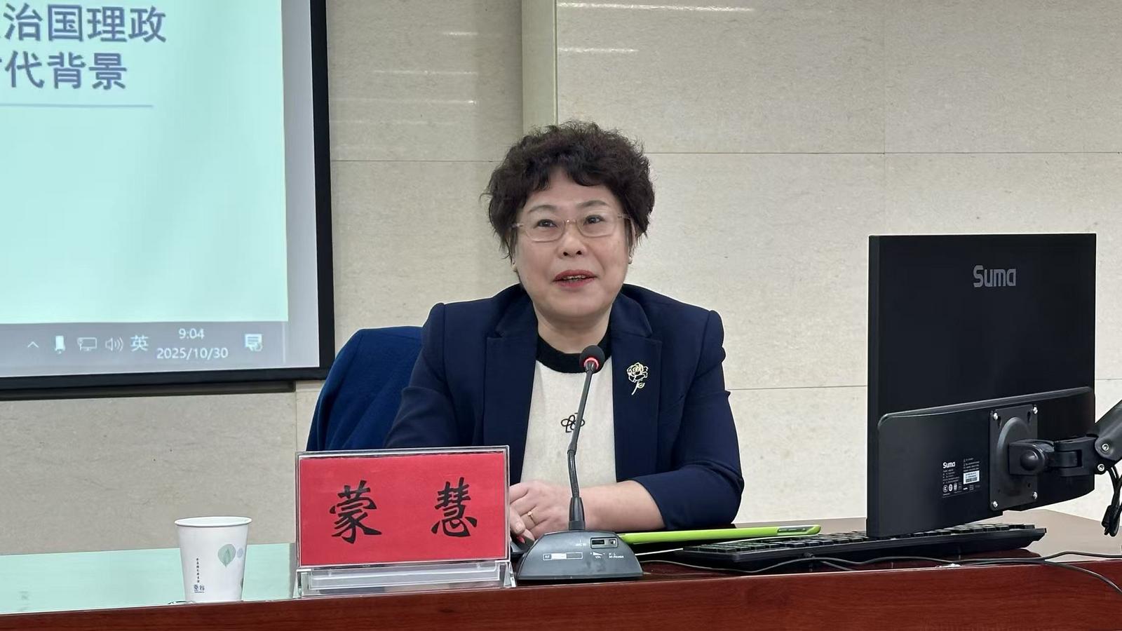 报告会上,蒙慧教授围绕《习近平谈治国理政》第五卷,从深刻把握《习近平谈治国理政》第五卷出版的时代背景、核心要义、学习要求等三个方面进行了深入、系统、精彩的解读。整场宣讲主题鲜明、脉络清晰、重点突出、内涵丰富,既有理论高度、思想广度,更有实践温度,为广大党员干部进一步学好用好《习近平谈治国理政》第五卷打下了良好基础。