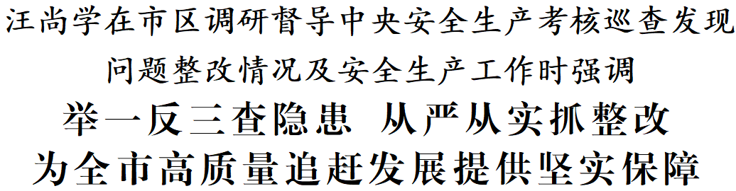 汪尚学在市区调研督导中央安全生产考核巡查发现问题整改情况及安全生产工作