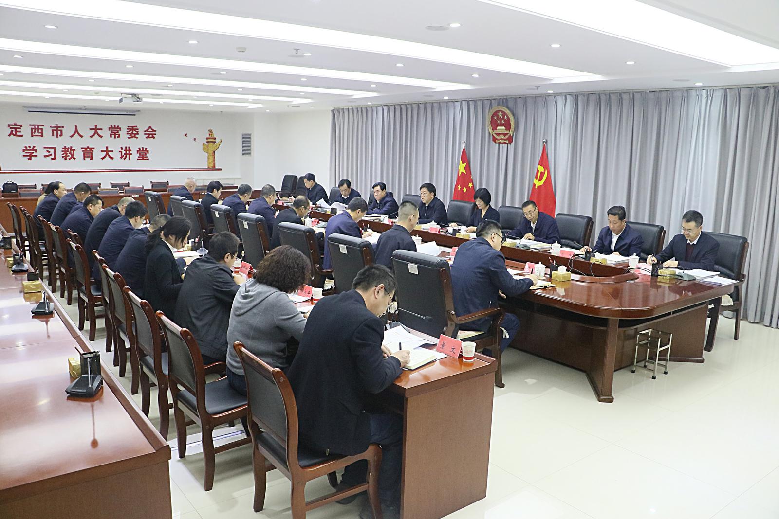 新定西讯 12月9日,市人大常委会党组(扩大)会议召开,学习习近平总书记在听取海南自由贸易港建设工作汇报时的重要讲话、广东考察时的重要讲话以及主持中央政治局第二十三次集体学习时的重要讲话精神,传达学习中央和省委、市委有关会议精神,安排部署贯彻落实工作。市人大常委会党组书记、主任温卫东主持会议并讲话。