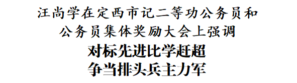 新定西讯 12月11日,定西市召开记二等功公务员和公务员集体奖励大会,市委书记汪尚学出席并讲话。他强调,要深入学习贯彻党的二十届四中全会和习近平总书记视察甘肃重要讲话重要指示精神,对标先进、比学赶超,在推动高质量发展的实践中争当排头兵、主力军,为奋力谱写中国式现代化定西篇章作出新贡献。