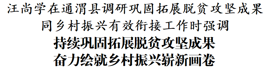 新定西讯 12月17日,市委书记汪尚学深入通渭县调研巩固拓展脱贫攻坚成果同乡村振兴有效衔接工作。他强调,要深入学习贯彻党的二十届四中全会精神和习近平总书记关于“三农”工作的重要论述,全面落实党中央决策部署和省委工作要求,立足资源禀赋,激活特色产业潜力,聚焦关键环节,集中攻坚补齐短板,持续巩固拓展脱贫攻坚成果,奋力绘就乡村振兴崭新画卷。