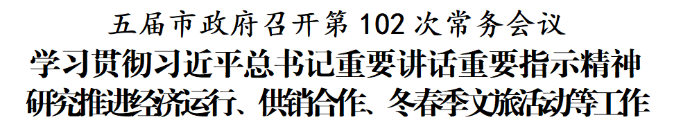 新定西讯 12月19日上午,五届市政府召开第102次常务会议,学习贯彻习近平总书记重要讲话重要指示精神,分析全市1至11月经济形势,研究推进经济运行、供销合作、冬春季文旅活动等工作。市委常委、常务副市长张强主持会议。