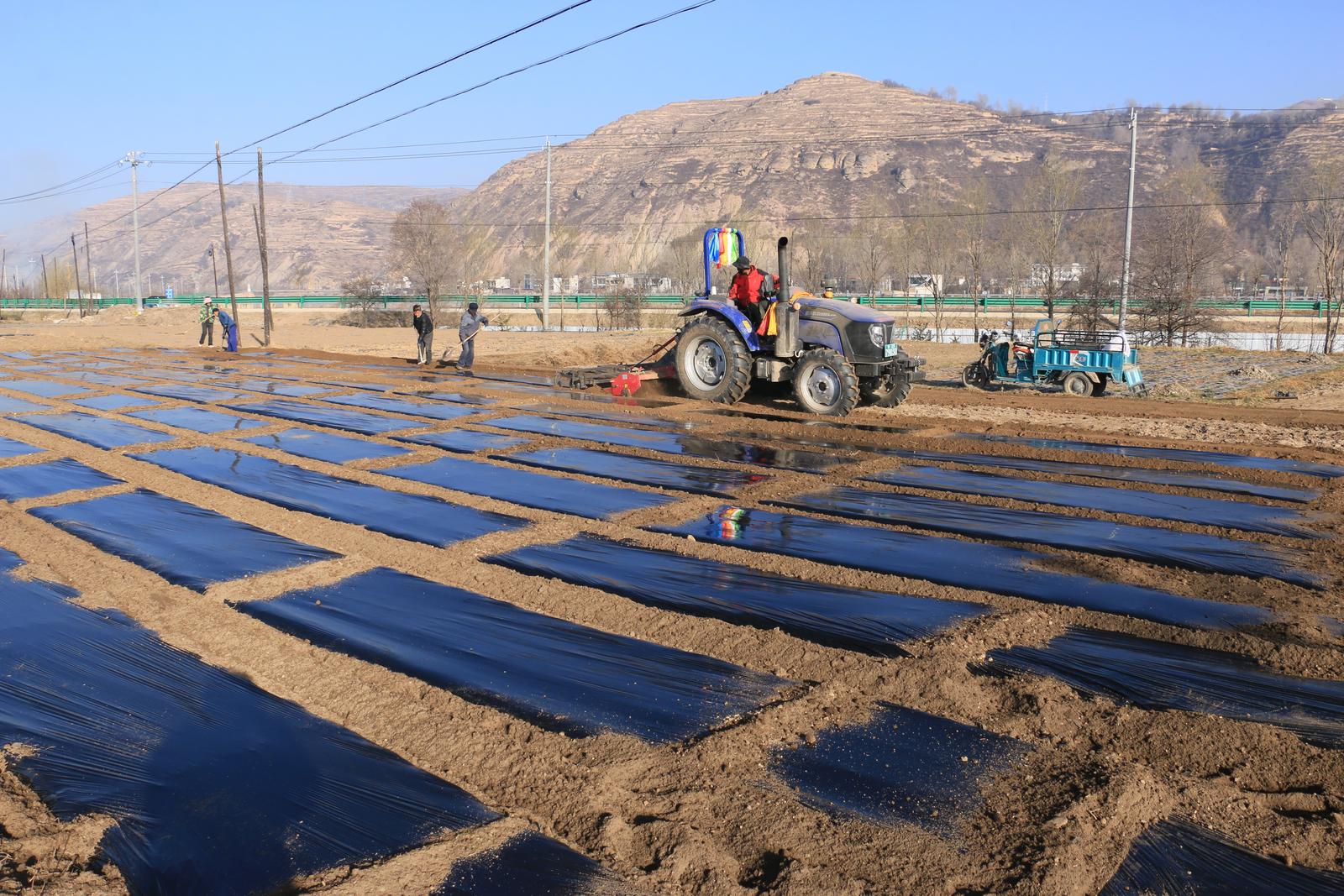 3月11日,岷县十里镇群众正在用农机进行耕地覆膜为春耕春播做准备。惊蛰过后气温回升,该镇群众迅速投入春耕生产各项工作,岷县洮河南北两岸,各乡镇群众抢农时、抓季节,田间地头到处呈现着一派平田整地、采挖药苗的劳动景象,一幅幅抢抓农时、人勤春来早的生动图景在岷州大地徐徐展开。