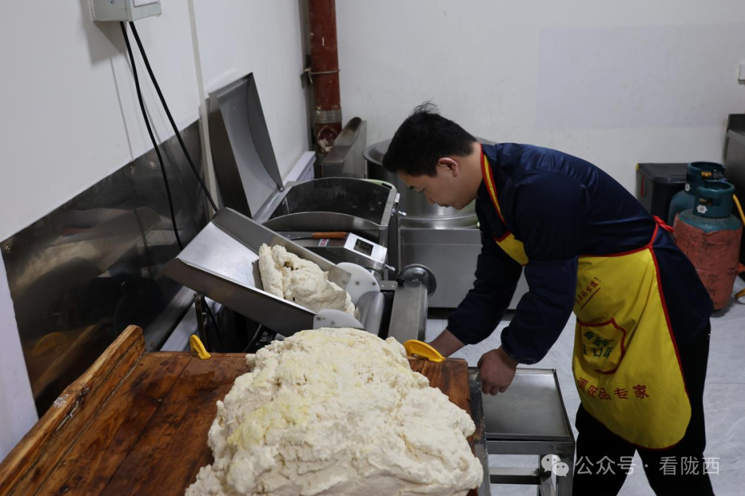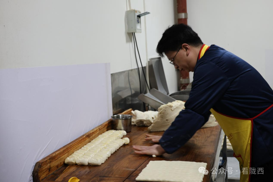 王勇的手艺,师出名门。2007年到2015年底,他一直在陇西县城鼓楼附近新街巷口的杜氏扯面学徒打工。那家店,在陇西大肉面界也算得上老字号了。八年的耳濡目染,让他把传统工艺的每一道工序、每一个细节都烂熟于心。2016年,他在广场丽院南门西侧开了第一家属于自己的“王勇大肉面”。40平米的小店,传统口味,面条筋道,顾客天天排长队。平日里一天卖出一两袋面。寒暑假旺季,最多能卖出四五袋。生意红火,口碑相传。2018年,有人找上门来要加盟。跟班学习三个月,炒肉臊子调料由总店统一供应。由于质量把控严格,加盟店经营的大肉面味道纯正,顾客反响良好,一时间王勇大肉面名气大盛,一路增加到现在的12家。2025年,王勇大肉面总店也顺势搬到了现在渭水华府小区总面积120平方米的门面房。