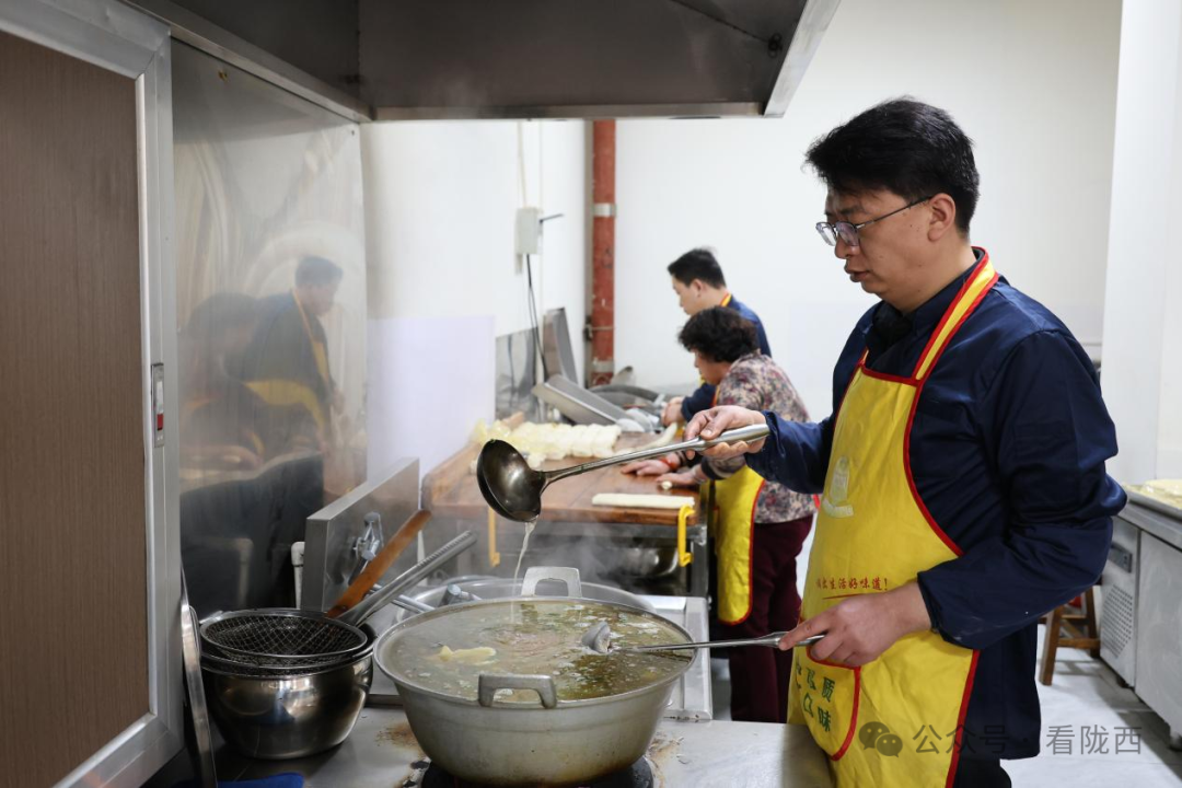 抬眼往厨房里看,一米八几的个头,戴着眼镜,系着围裙,正忙着擀面、揪面——这位90后帅哥,就是王勇。别看他年轻,做起面来,那份专注与老练,早已是二十年厨艺沉淀下的功夫。