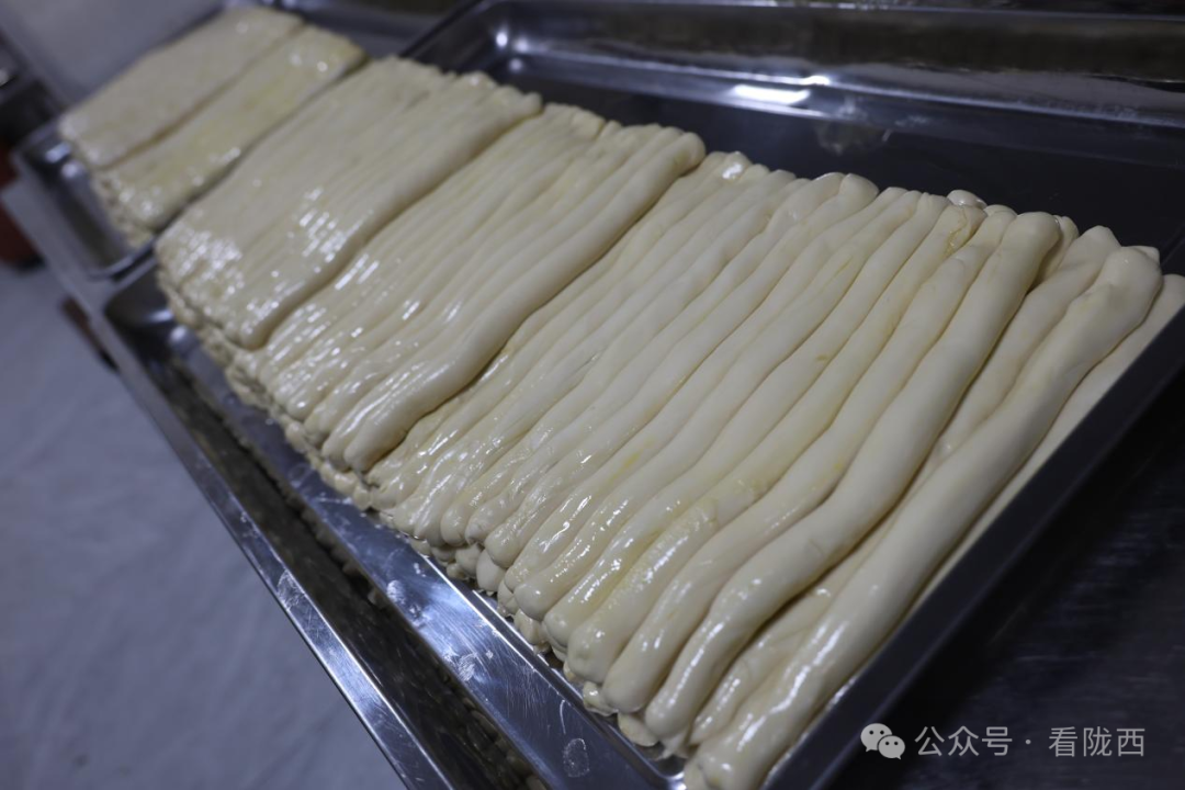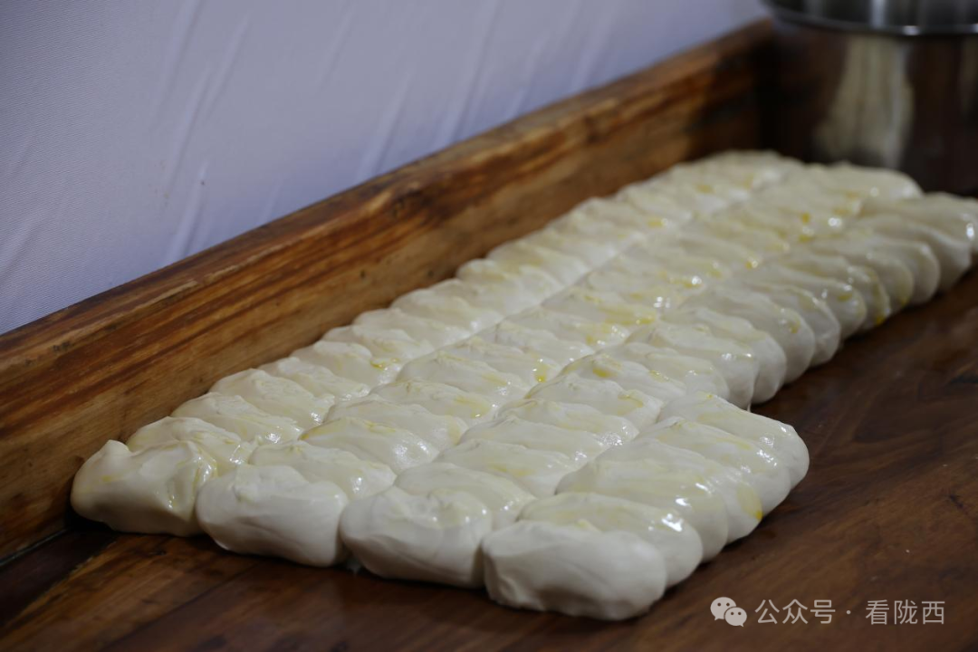 最后一个面剂揪好,抹上清油,开始搓面条——三秒一根,一公分粗,三十公分长,根根利落。搓好的面条再抹油,装盘,盖好醒面。