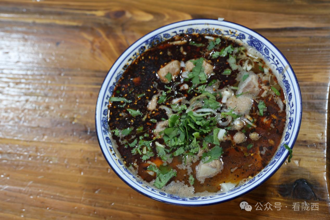 白瓷青花的大碗,面片白里透黄,浇上慢火熬炖的汤汁,加一份肉臊子,撒上翠绿的香菜和葱末,再来一勺红亮的油泼辣子——光这色泽,就足以让人垂涎三尺。