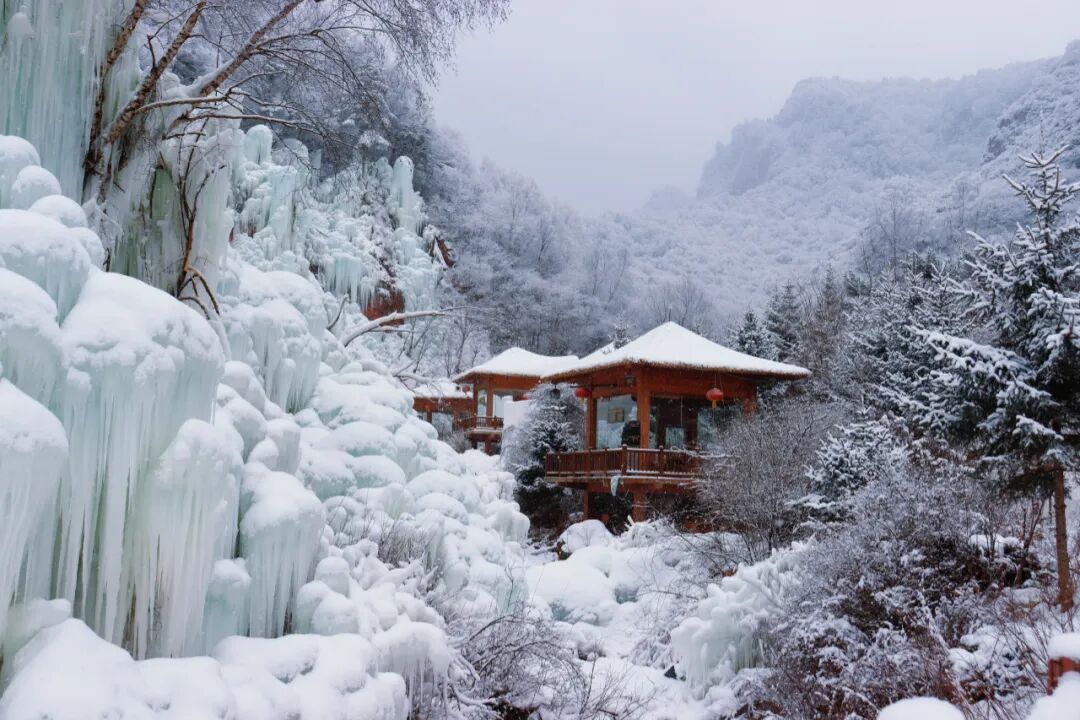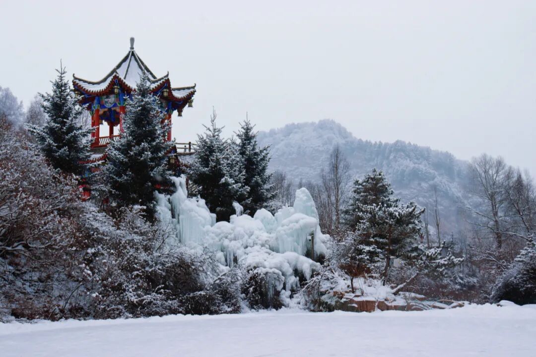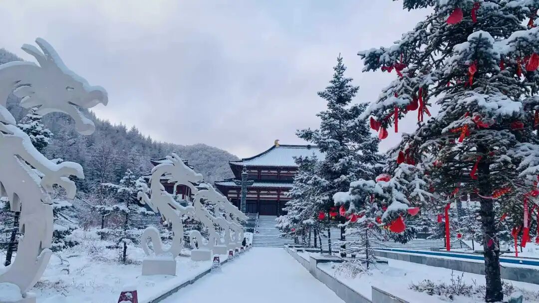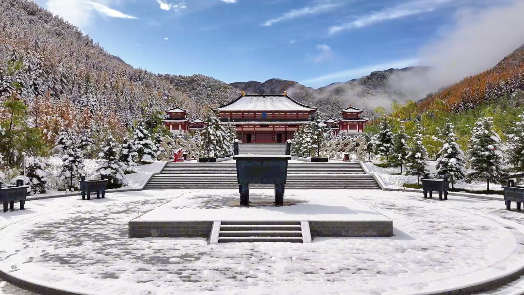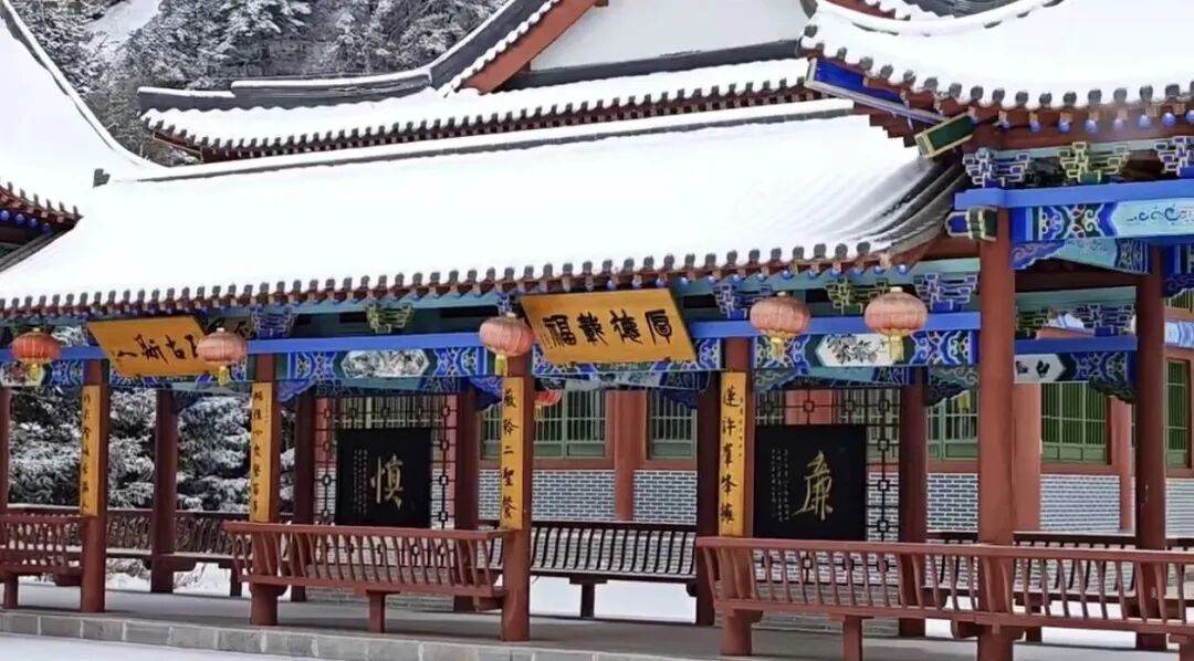 雪落渭水源头,冰瀑凝玉,古殿披霜。青山作底,白雪为宣,一笔写尽大禹治水的苍茫,一画藏起渭河文明的初心。