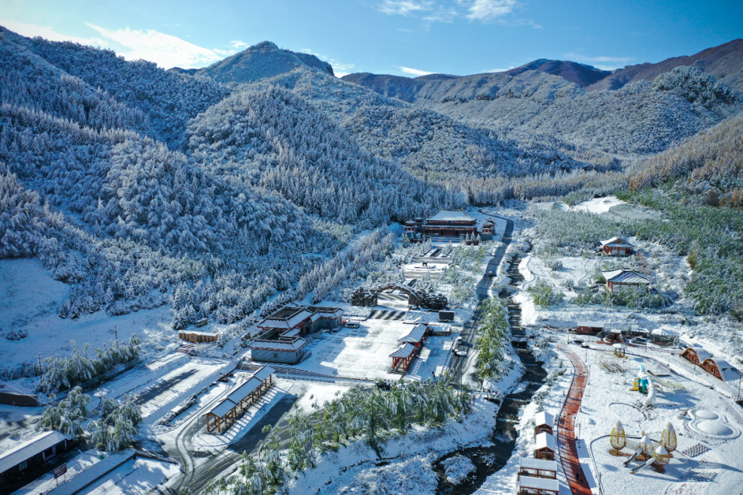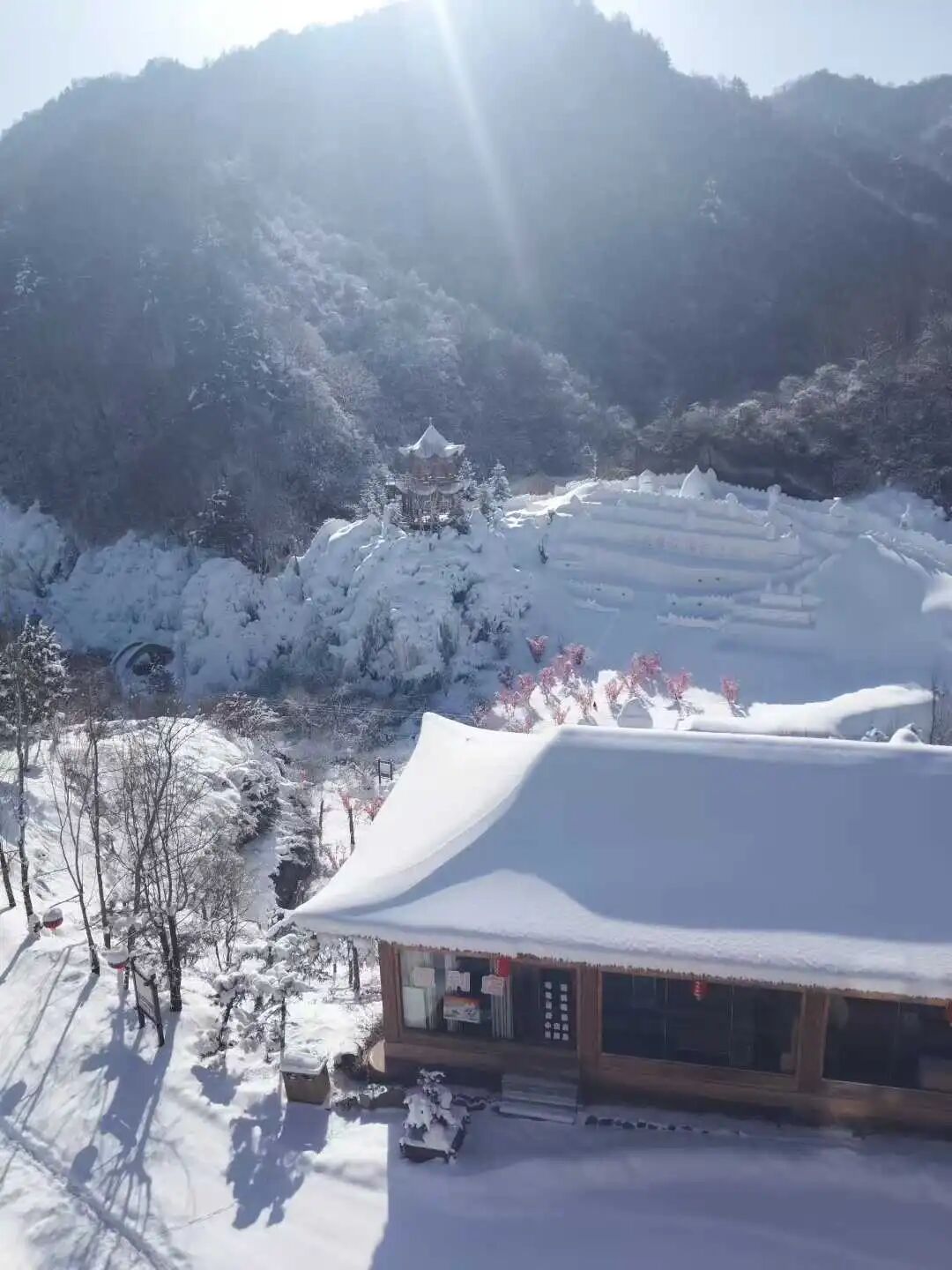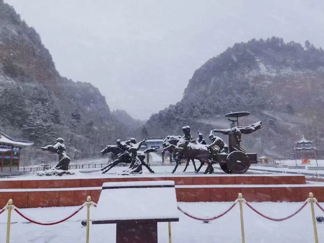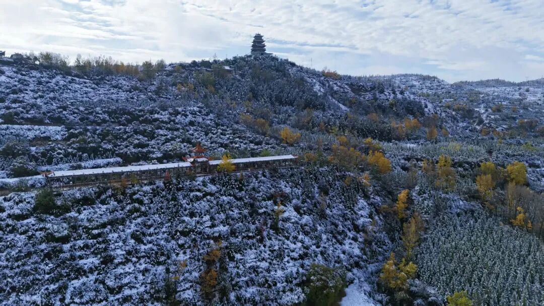 雪落渭水源头,冰瀑凝玉,古殿披霜。青山作底,白雪为宣,一笔写尽大禹治水的苍茫,一画藏起渭河文明的初心。