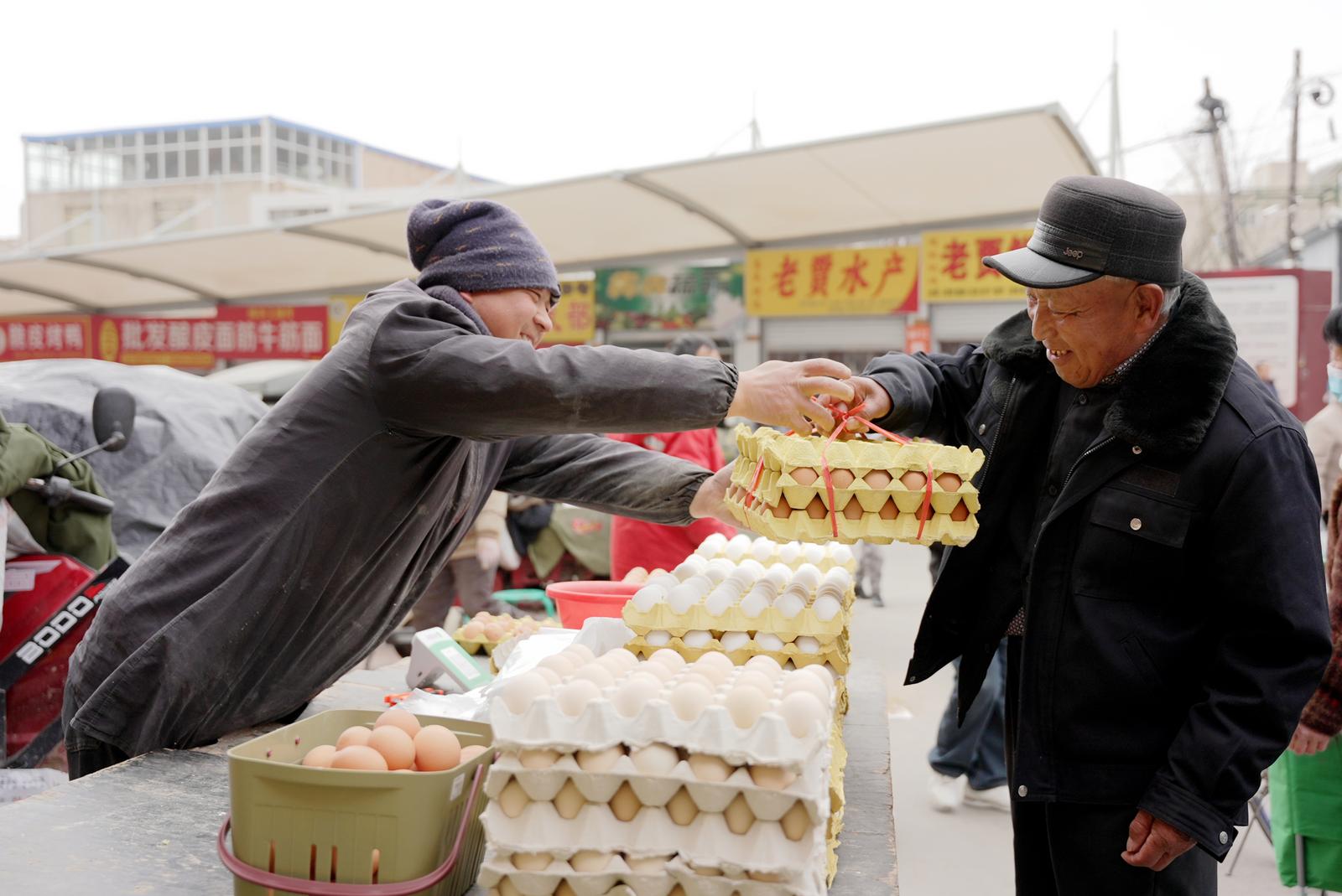 3月19日,记者在安定区览山农贸市场看到,市场内摊位整齐有序、摆放规范,新鲜蔬果、禽蛋水产等农副产品种类丰富、供应充足。市民们穿梭其间精心选购,吆喝声、谈笑声此起彼伏,现场一派热闹景象。