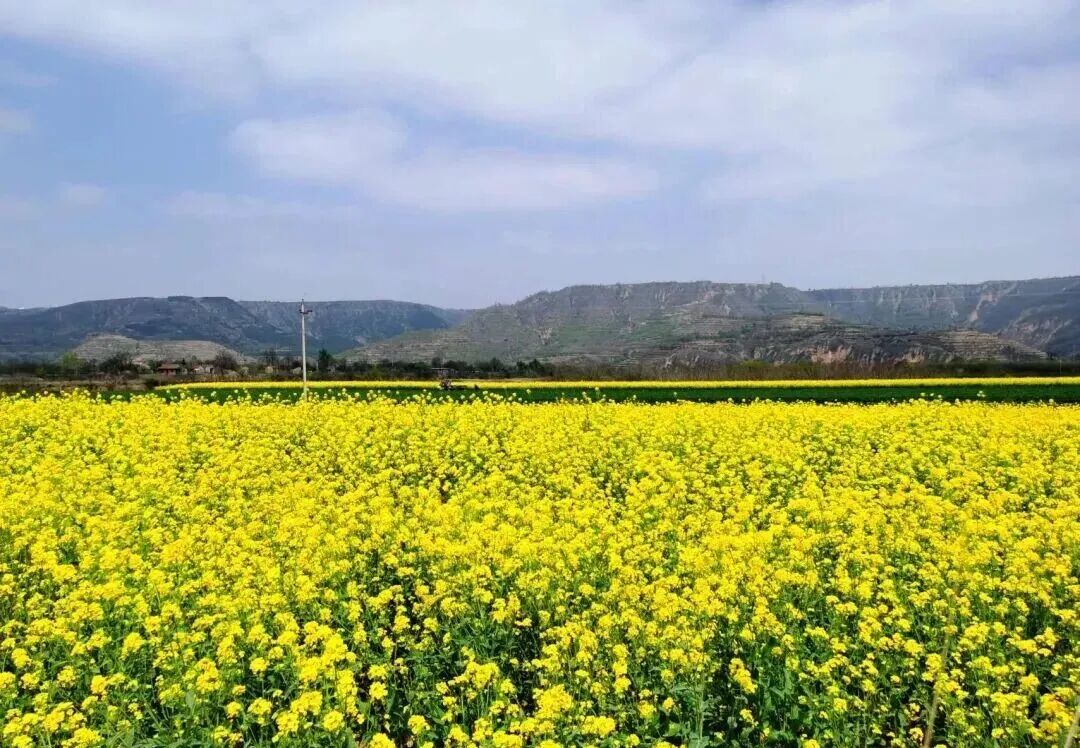 宁县新庄镇雨落坪村的油菜花,花期时千亩花田竞相绽放,金黄花海铺展在群山之间,宛如巨型油画。漫步花田,赏塬上春日美景,还能体验露营烧烤的乐趣。
