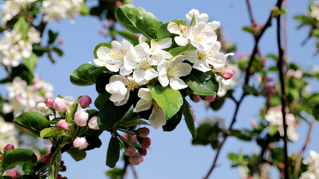 中村正洋苹果公园,万亩苹果花春意盎然,白里透粉的花海绵延数里。这里不只有自然美景,还有运动的乐趣:21 公里马拉松赛道漫步、玻璃栈道远眺、房车营地休憩…… 丰富的休闲体验任你选择。