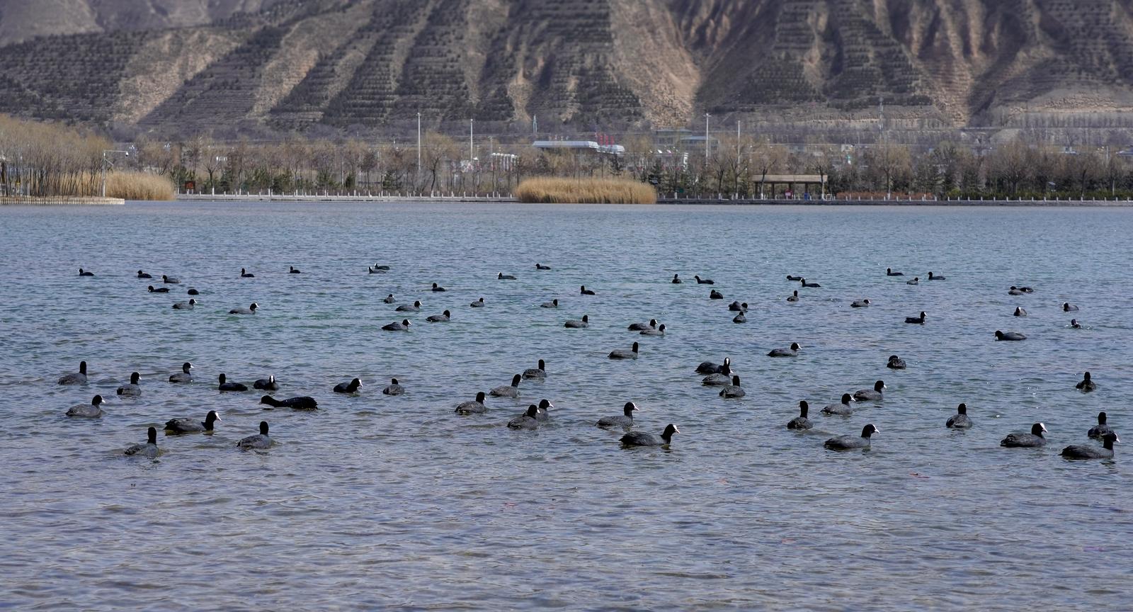 近日,随着天气转暖,大批白骨顶鸡重返定西湖。它们或在碧波中悠然游弋,或振翅追逐嬉戏,为春日的湖面增添了无限生机,成为一道灵动的生态风景线。