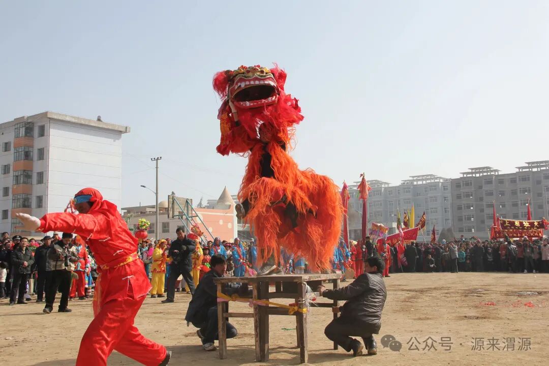 ▲2008年2月20日,渭源县社火调演,舞狮表演。