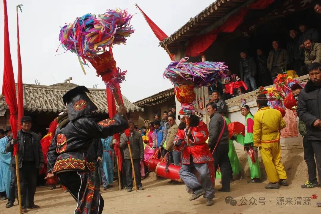▲2015年3月3日,渭源县清源镇秦王村庙里,社火队跳高烨表演。(村庄 摄影)