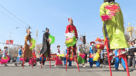 ▲2019年,社火队表演高跷。(王义平 摄影 )