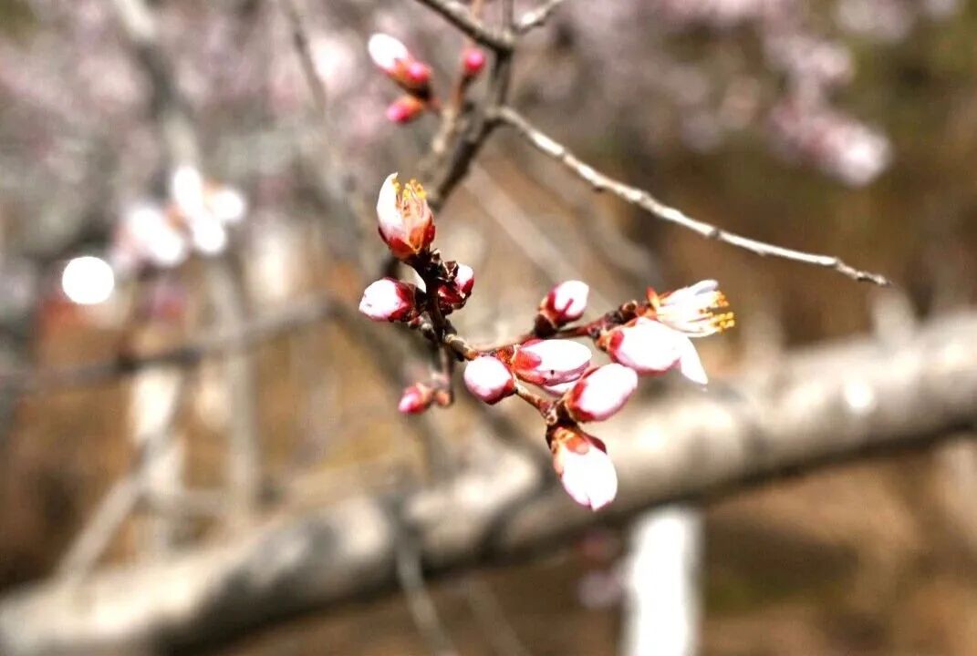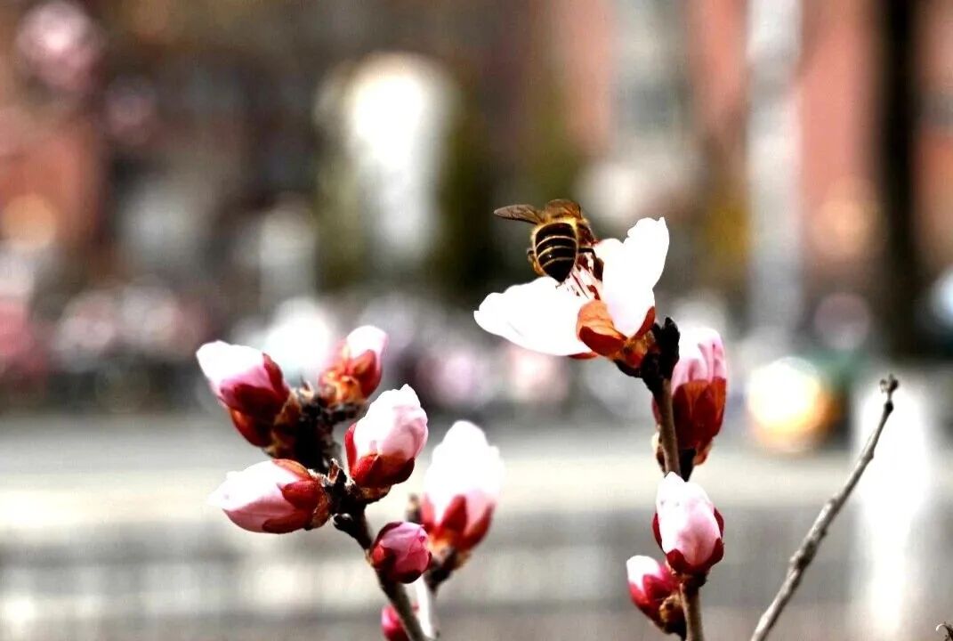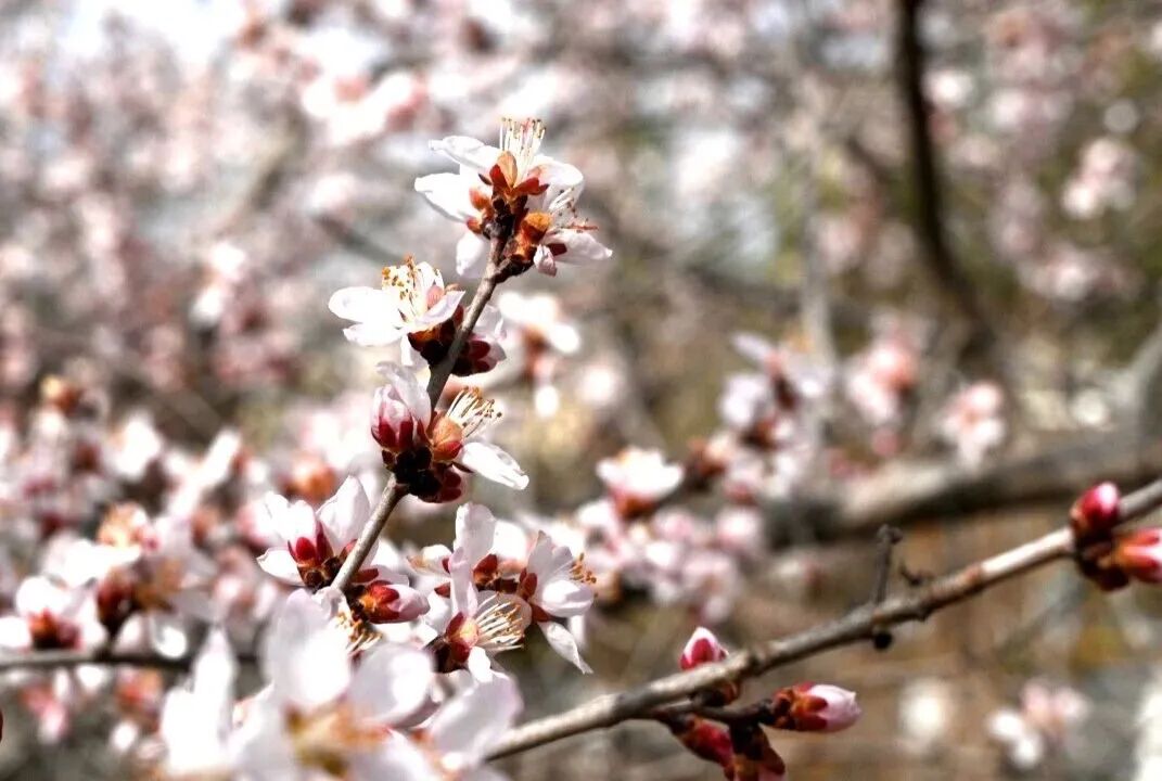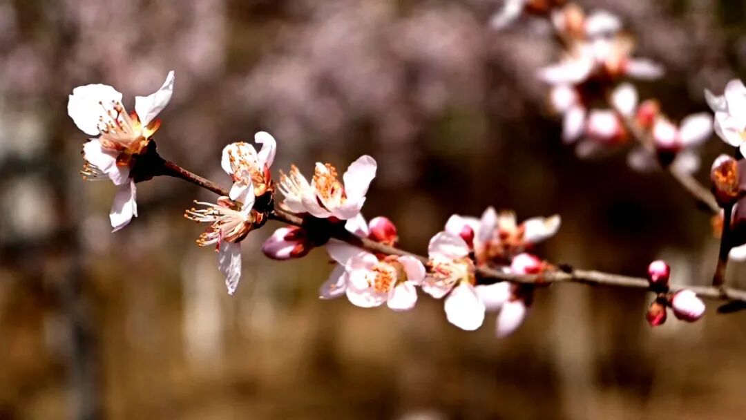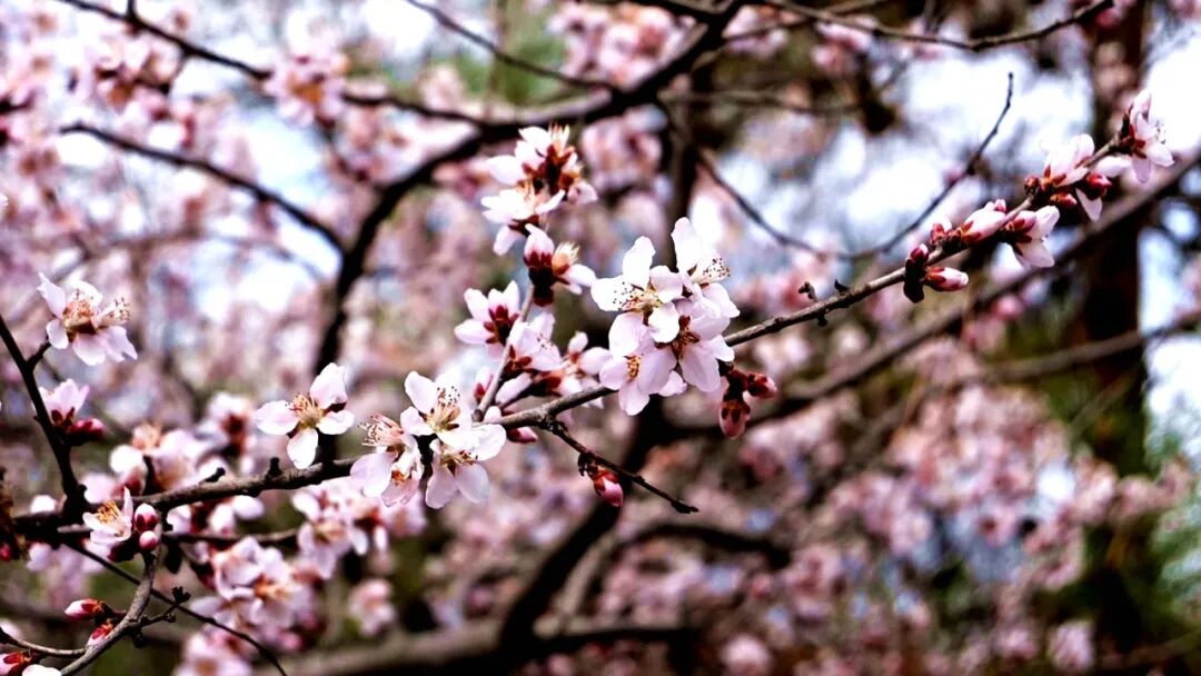 将台街边,成片山杏花迎风绽放,粉白花瓣与艳红蓓蕾交错点缀,层层叠叠,清雅动人。远远望去,沿街繁花连绵成粉色花廊,掩映着脚下的步道。往来行人纷纷驻足,或静赏春光,或举起手机定格春日美景。