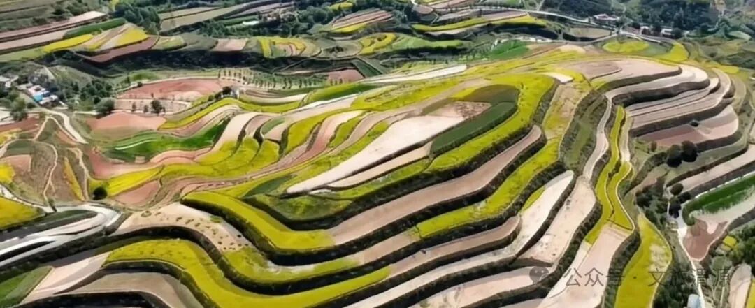 走出县城,目光所及都是层层叠叠的梯田。春天,新翻的黄土像被画家抹上了浓淡不一的色块;夏天,绿油油的洋芋苗铺到天边;秋天最热闹,金黄的糜子、火红的荞麦,把山梁染成调色盘。田埂上,戴头巾的农妇挥着锄头,山坡上,放羊人的吆喝声在山谷里打转。傍晚时分,炊烟从窑洞顶上的烟囱里冒出来,混着饭菜香,在梯田上空慢慢散开,那是刻在渭源人骨子里的乡愁。