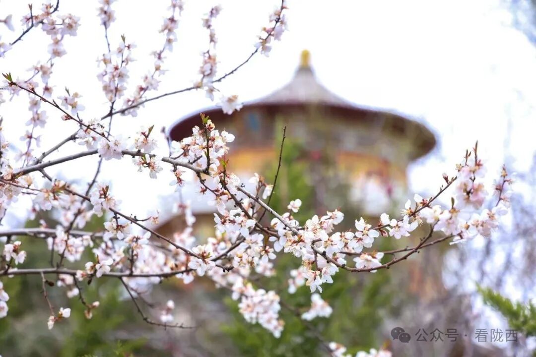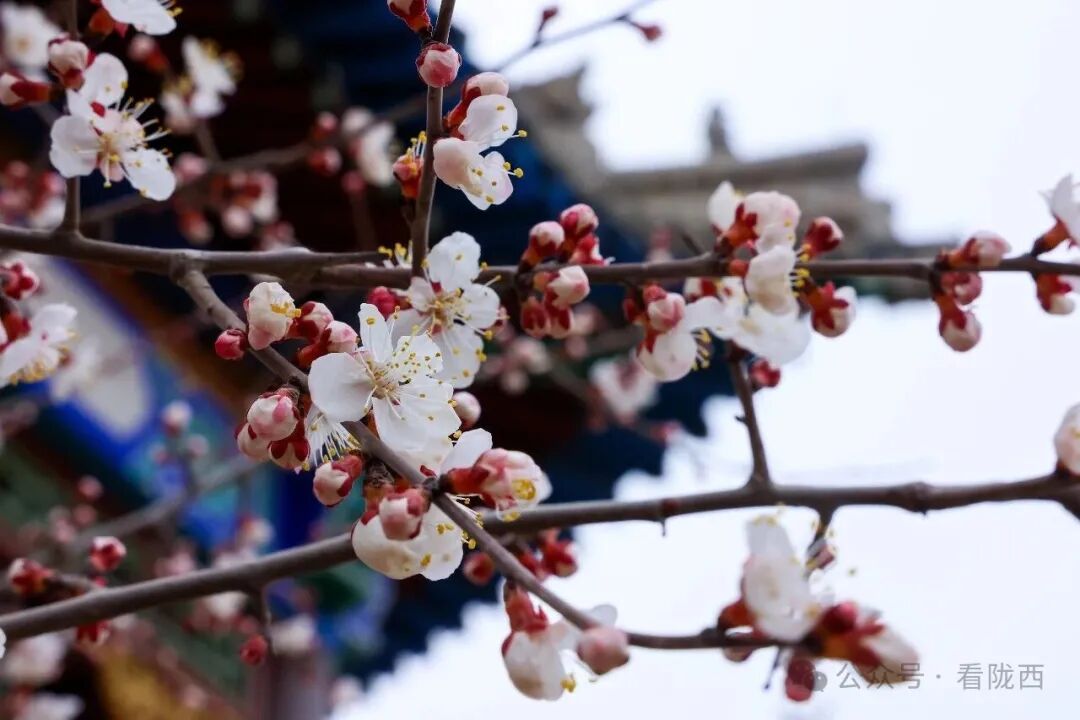 春风轻拂陇西李家龙宫,杏花似雪、桃花如霞,粉白相间缀满檐角枝头,一簇簇娇艳、一瓣瓣温柔,将千年古建的厚重与春日温柔揉进风里,漫开满城烂漫,尽染古郡诗意春光。