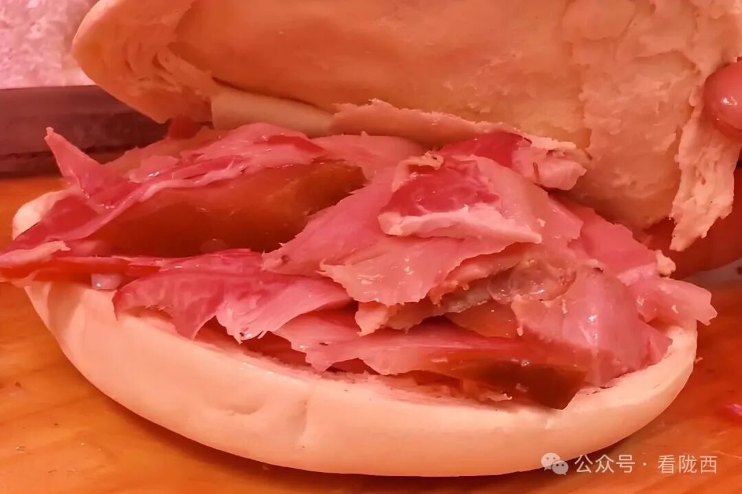 食用时亦存古法——非煮而蒸。用一种特制的“带锅”放上蒸笼,整块肉放在上面蒸,等肉熟了就摆在木案上出售。此时瘦肉灿艳似红霞,瘦而不柴;肥肉晶莹若玛瑙,肥而不腻。以刀割片,薄可透亮,趁热夹馍,最为经典。卖肉人总会割一片请客品尝,既显热情,也展刀法。