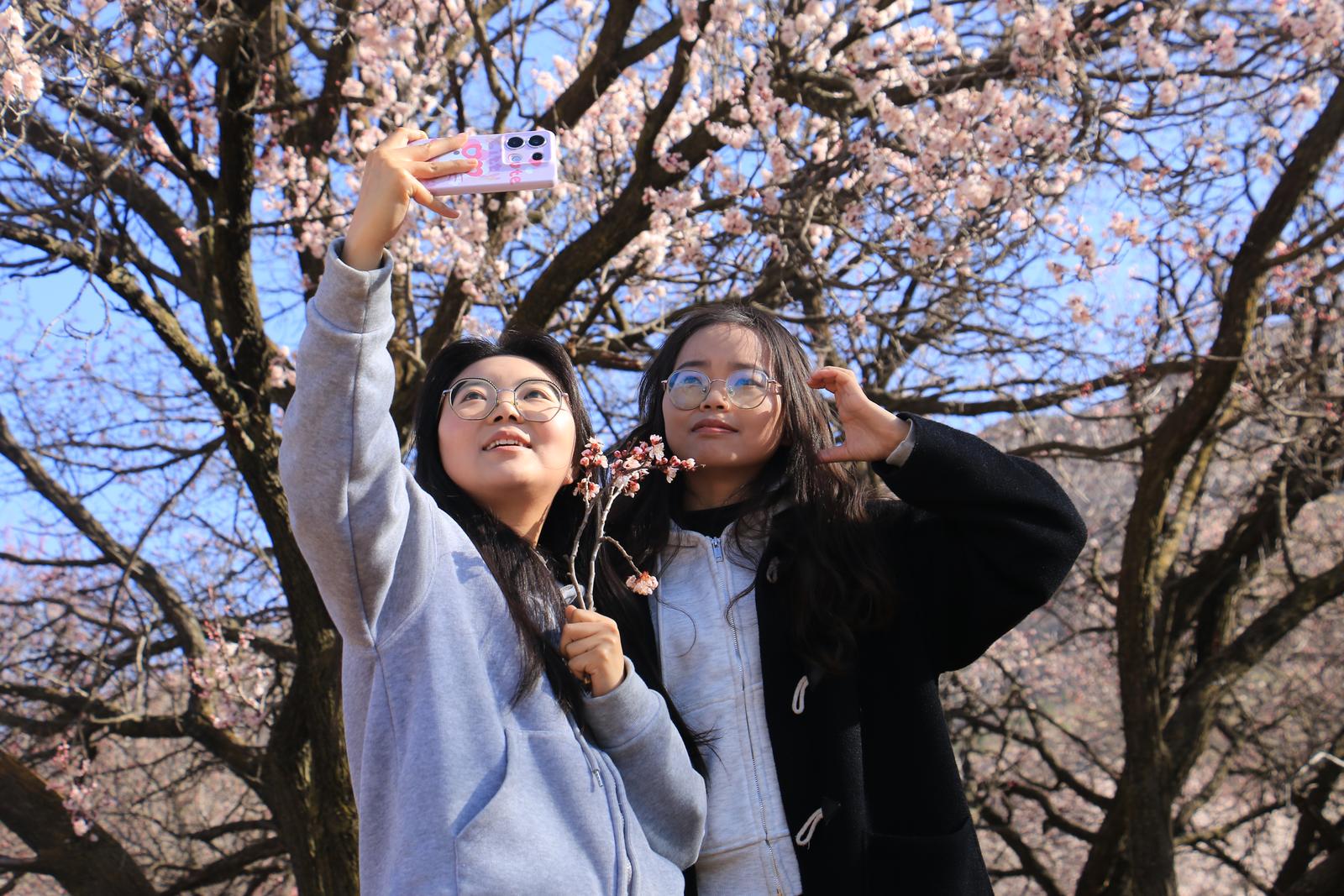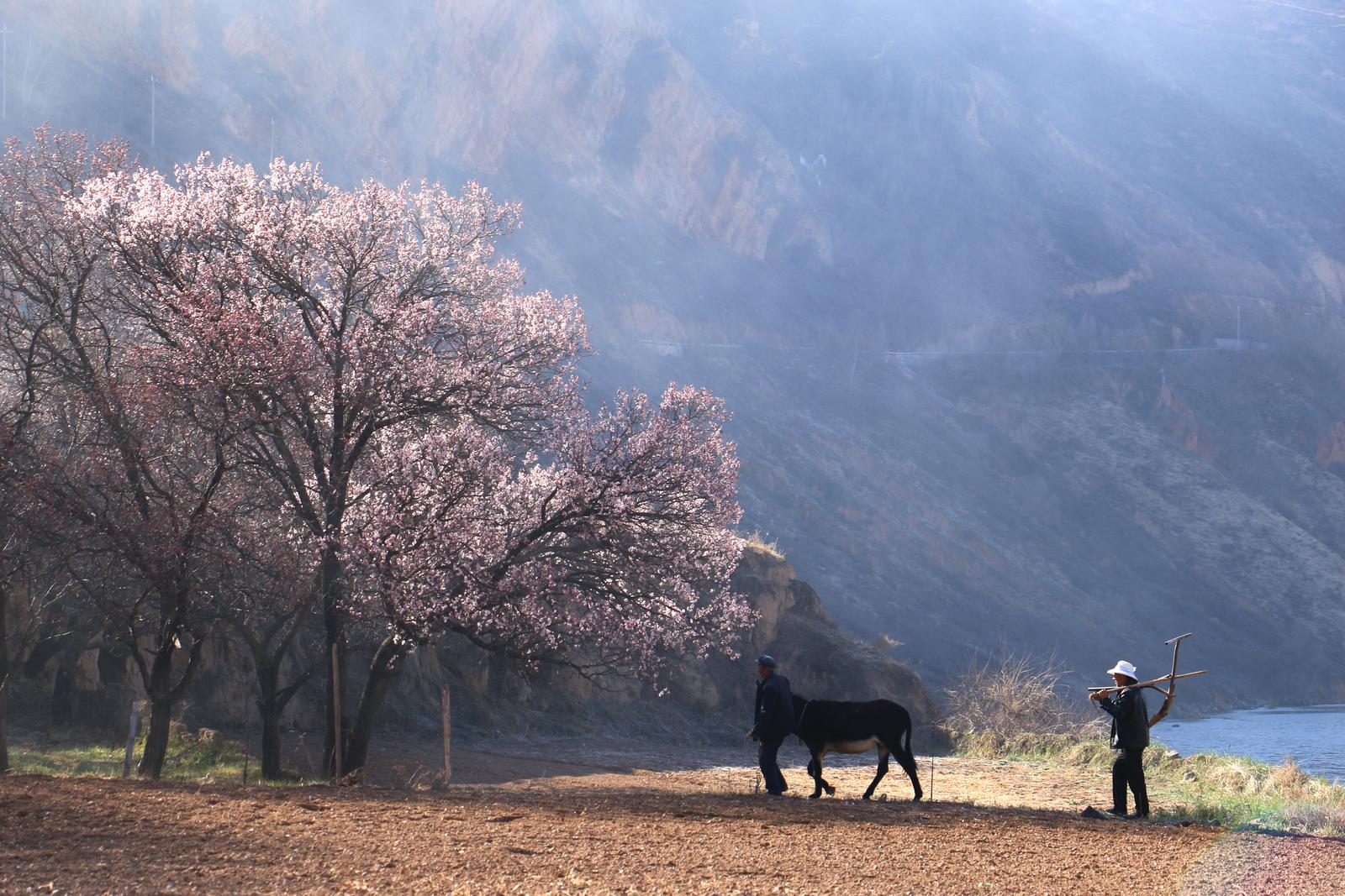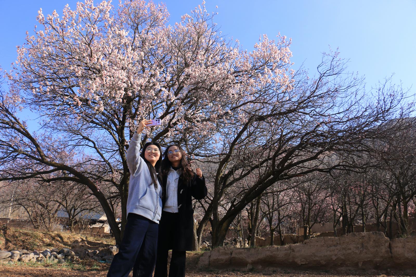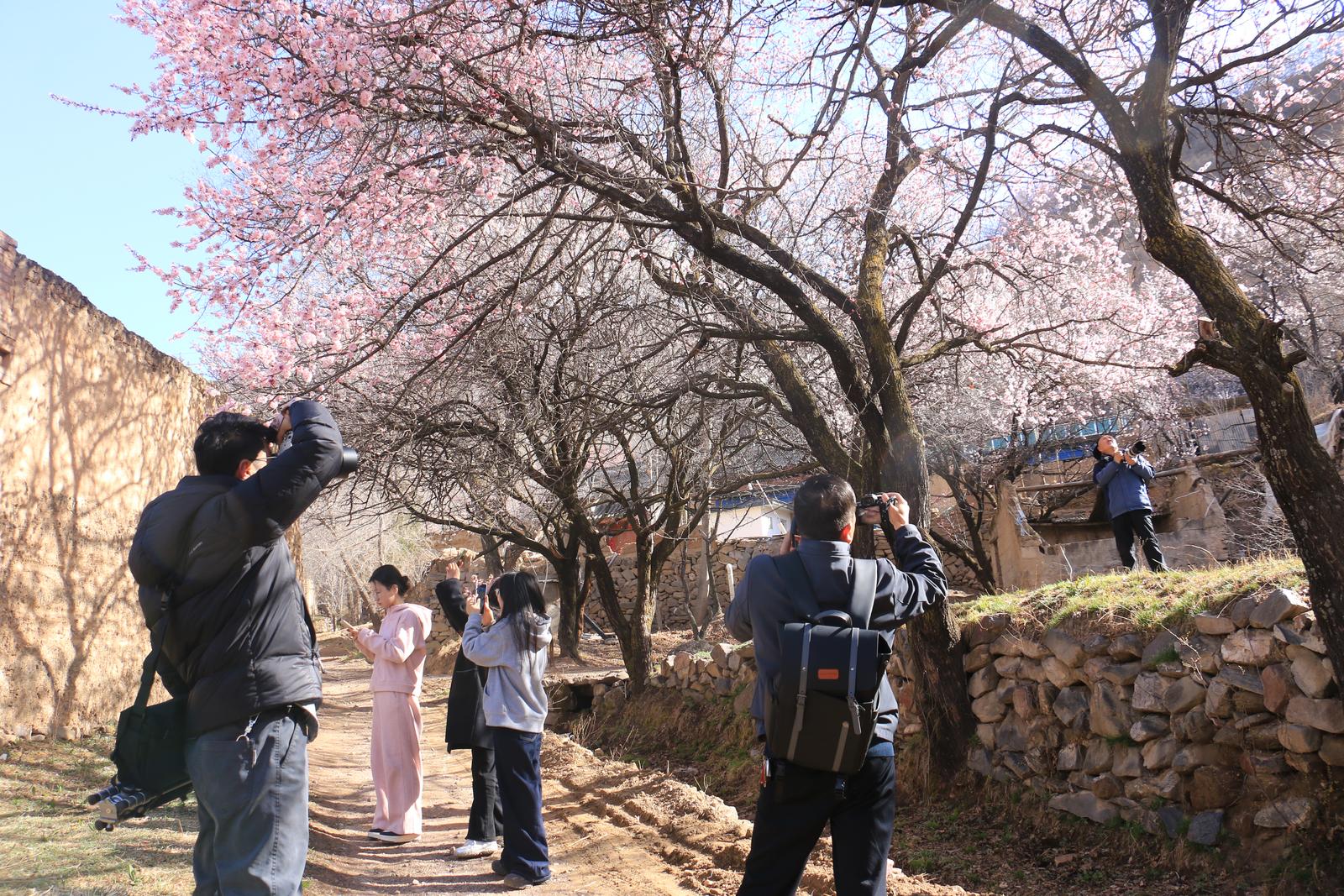 4月1日,岷县北部山区维新镇境内春意盎然,施旗村周边山杏桃花盛开,吸引周边市县游客纷纷前来赏花观景拍照游玩。美丽的杏花与错落有致的民居、洮水相映,勾勒出了一幅绝美的春日画卷。