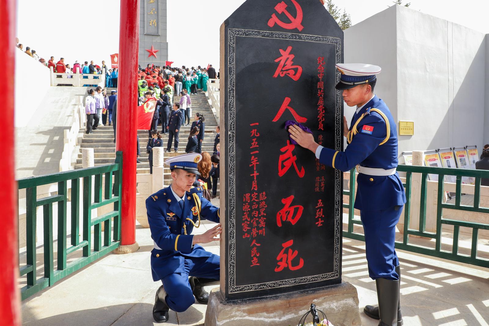 上午10时,纪念活动开始。礼兵步伐铿锵,敬献花篮。全体指战员脱帽默哀,深切缅怀为家国安宁献出生命的革命英烈,从英烈精神中汲取血性胆气,锻造过硬队伍。随后,指战员依次瞻仰献花,聆听讲解员讲述烽火岁月里的信仰抉择与生死坚守,并细心擦拭墓碑、清扫陵园。
