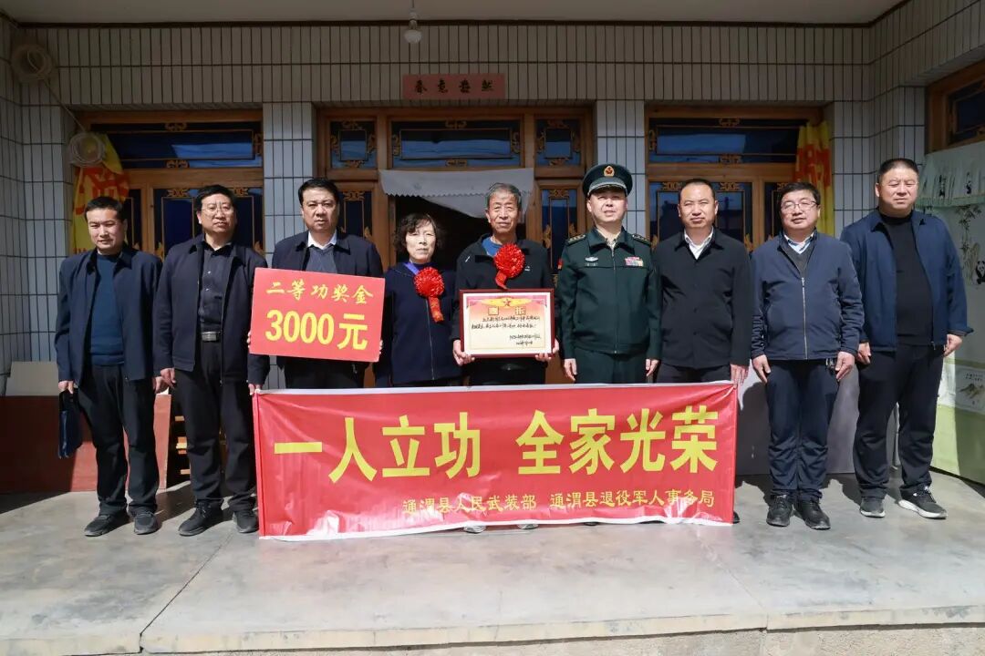 为进一步弘扬拥军优属光荣传统,营造尊崇军人、关爱功臣的社会氛围,4月2日,通渭县开展为荣立二等功现役军人家庭送喜报活动,将荣立战备训练二等功喜报和慰问金送到现役军人赵志新家中,让军人军属共享荣耀。