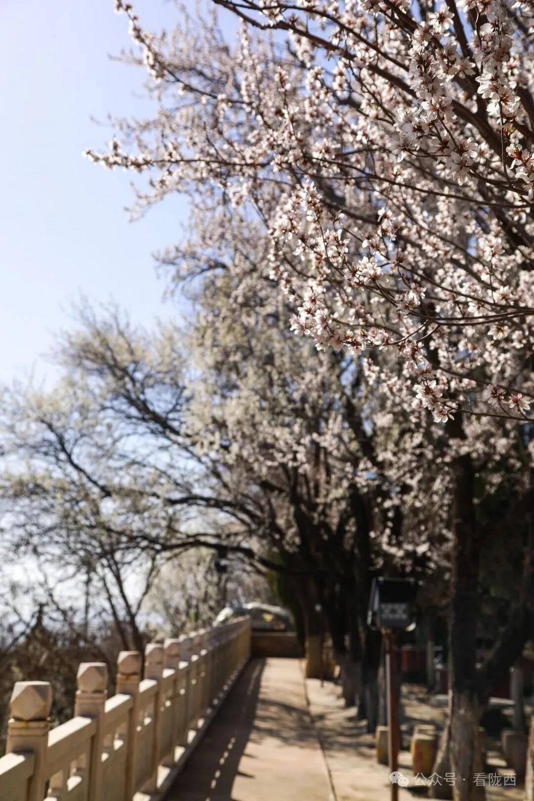 春日的陇西县仁寿山,光影与繁花相映成趣。阳光穿过花枝,在枝头、步道与古建间洒下斑驳碎金,勾勒出温柔的明暗层次。繁花在光影中舒展,树影轻摇,风过处流光婉转,将山间春色晕染得诗意盎然。登高远望,古城与远山在光影里错落有致,一光一影,一花一叶,尽显仁寿山独有的春日灵秀与陇西古城的静谧之美。