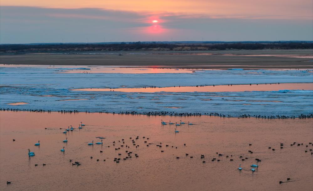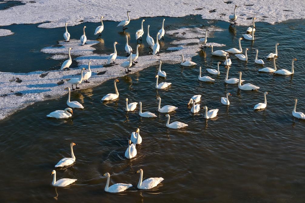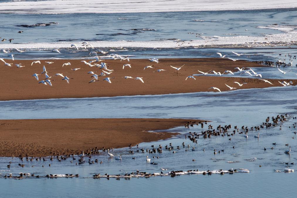 迎来大批北归天鹅