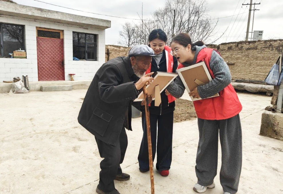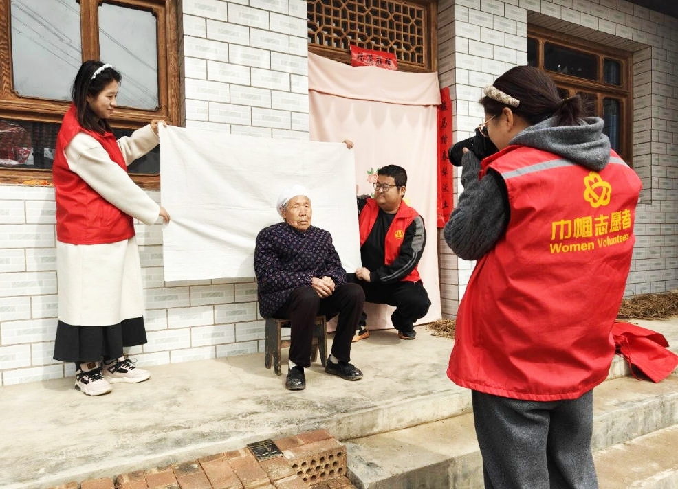 拍摄现场,风掠过山腰,阳光洒满庭院。志愿者耐心引导老人站在家门前、老槐树下、灶台旁,记录下他们最真实的模样。除了按下快门,志愿者更专注于倾听与陪伴,听老人讲述年轻时的故事,陪他们回忆远方的儿女,让这场短暂的合影成为彼此温暖的相遇。