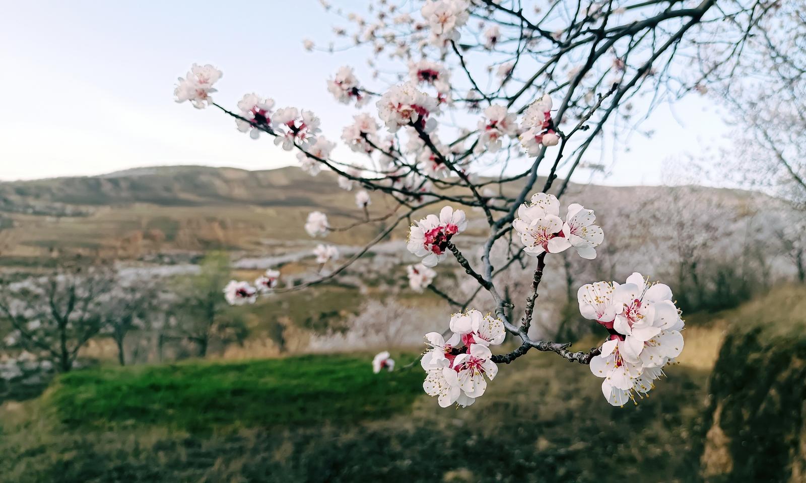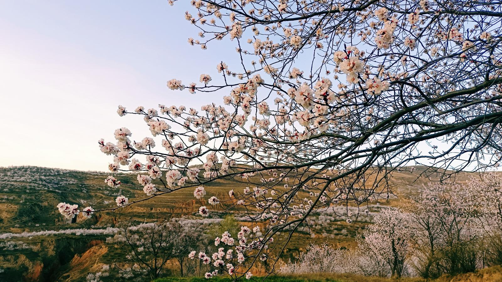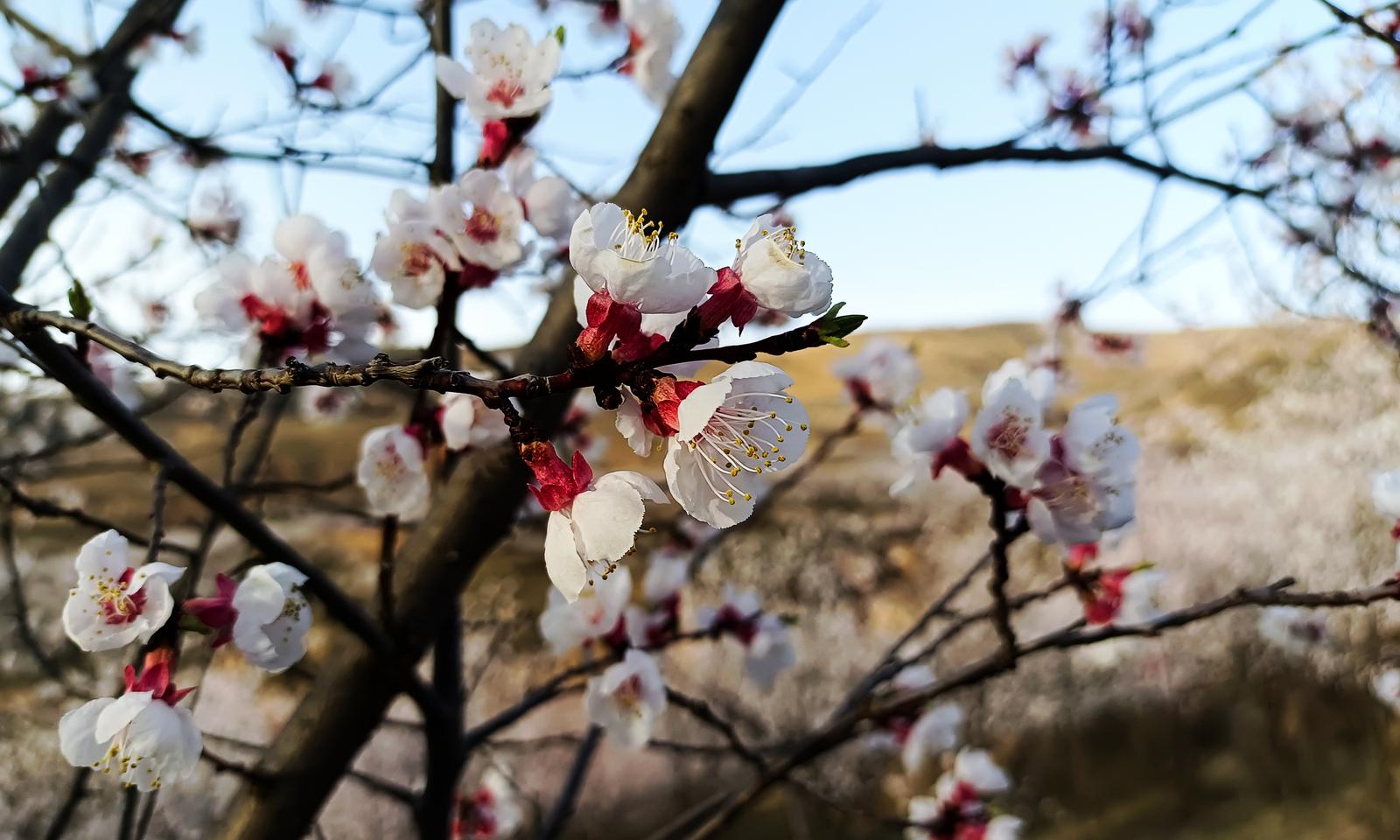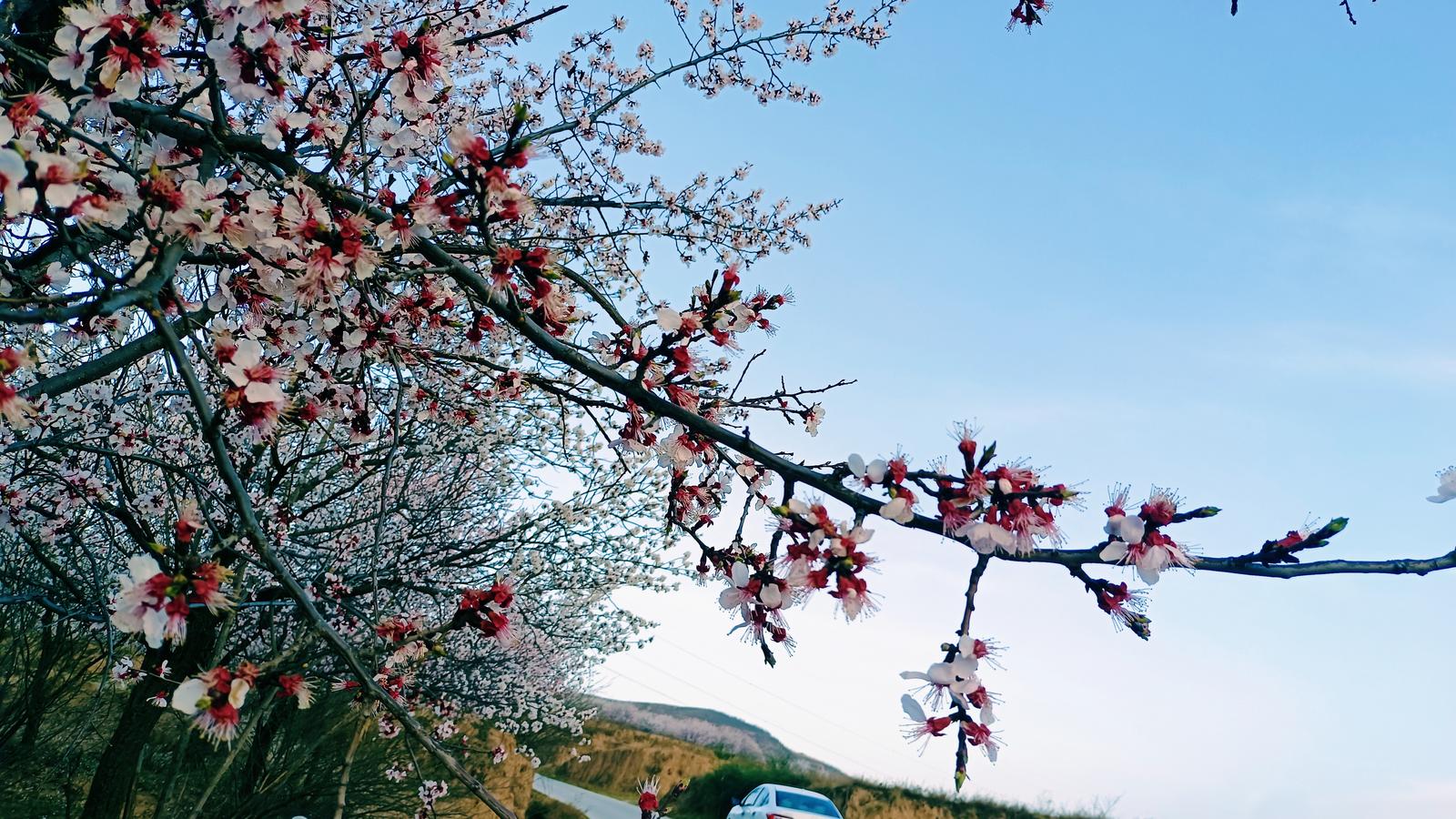 粉白的花浪层层叠叠,铺满黄土高原。花枝随风款摆,花瓣白里透粉,落英纷飞,诗意满山野。没有喧嚣,只有古朴的农舍、和煦的春风,以及被花香氤氲包裹的你。远离都市,沉浸式感受春日的静谧与美好——随手一拍,都是治愈系大片。