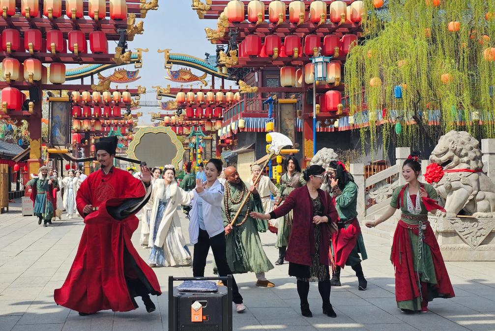 新华社济南4月7日电(记者滕军伟)春和景明,换上宋代服饰,走进山东省泰安市东平县大宋不夜城景区,游客犹如推开一扇通往宋朝的时空之门。