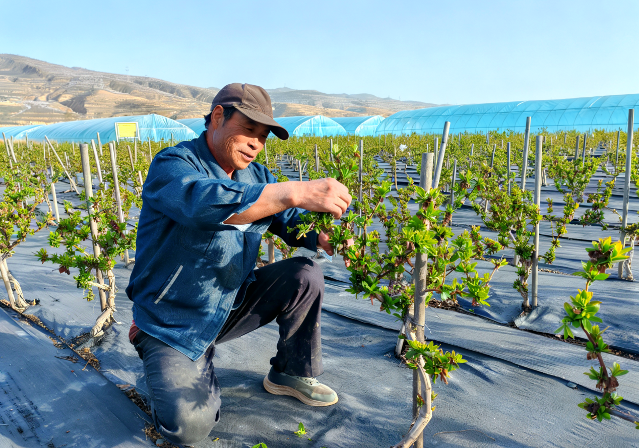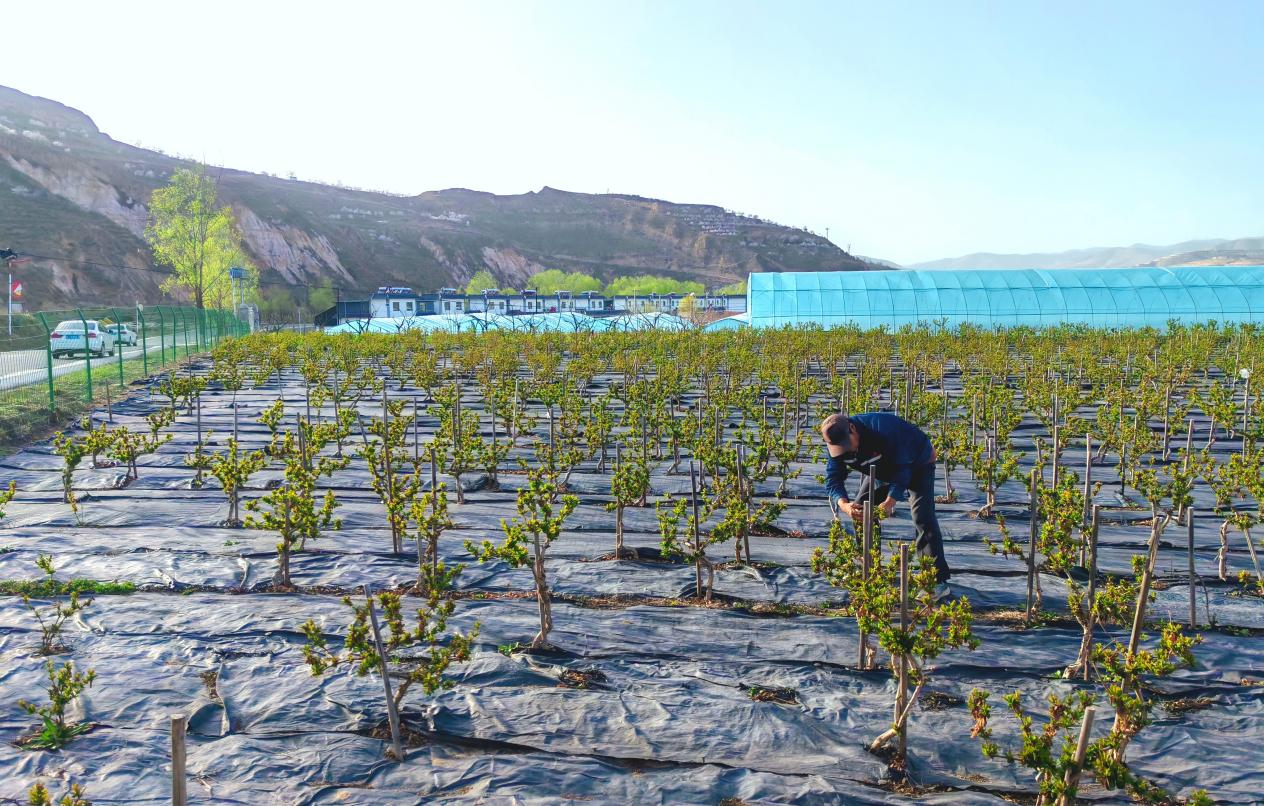 一把修枝剪,一双勤劳手,农户们有的用镰刀清园除杂、有的用钢叉清运枯枝,大家分工协作、干劲十足。远处的麦苗青青,身旁的花株吐绿,黄土高原的春日田间,满是生机与希望。