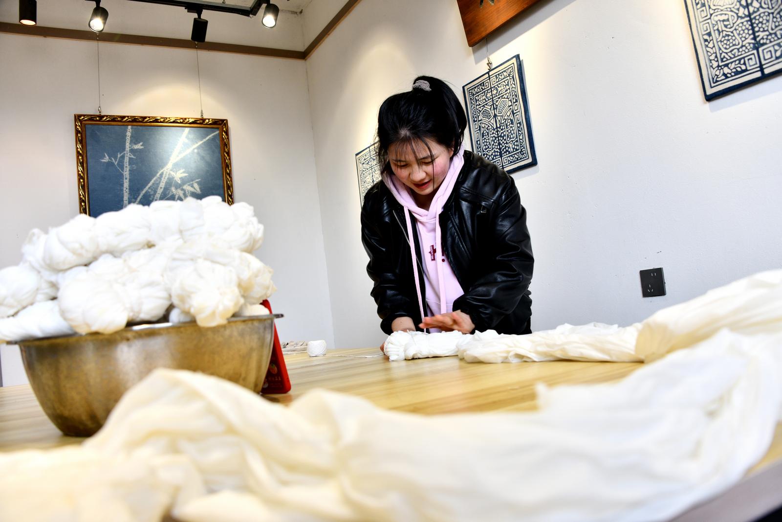 近日,在陇西县北关正街巾帼非遗工坊内,非遗传承人祁辉正带着员工开展染布、刺绣等技艺制作,客商忙着选购非遗文创产品。近年来,陇西县以巾帼非遗工坊为抓手,破解非遗传承困境与妇女就业难题,培育特色品牌,探索“非遗+农户+文创”融合模式,将百草缬染、陇西刺绣等老手艺转化为“指尖经济”。通过技能培训、订单化生产,带动数千名农村妇女居家灵活就业,实现非遗传承与乡村振兴同频共振,让老手艺在新时代绽放光彩。