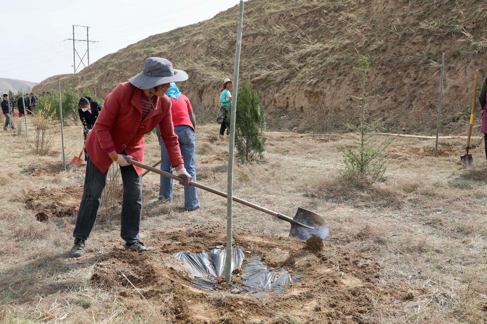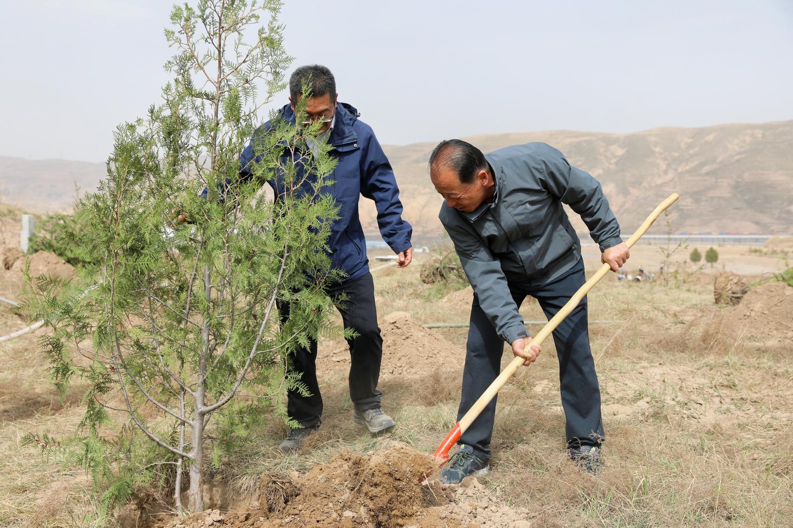 4月8日下午,市、区四大班子领导带领市区干部职工及群众代表,在安定区凤翔镇南二十铺村古雁坪山开展春季义务植树活动。
