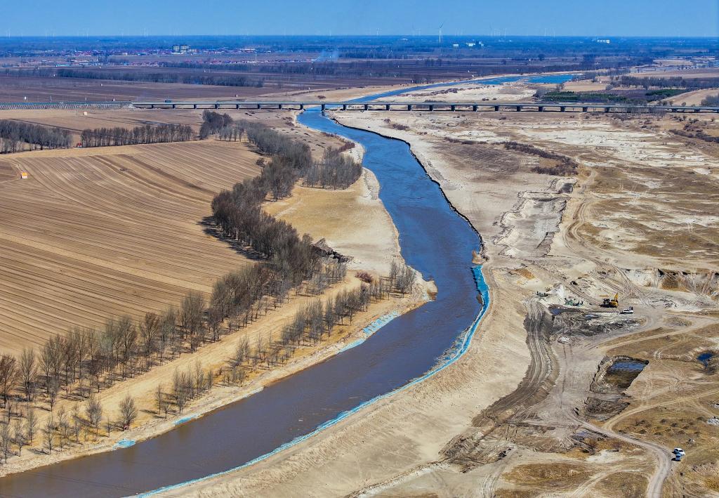 2025年4月8日拍摄的西辽河(无人机照片)。新华社记者 连振 摄