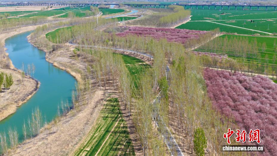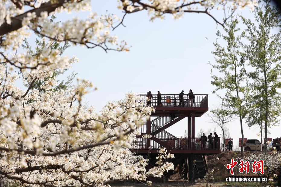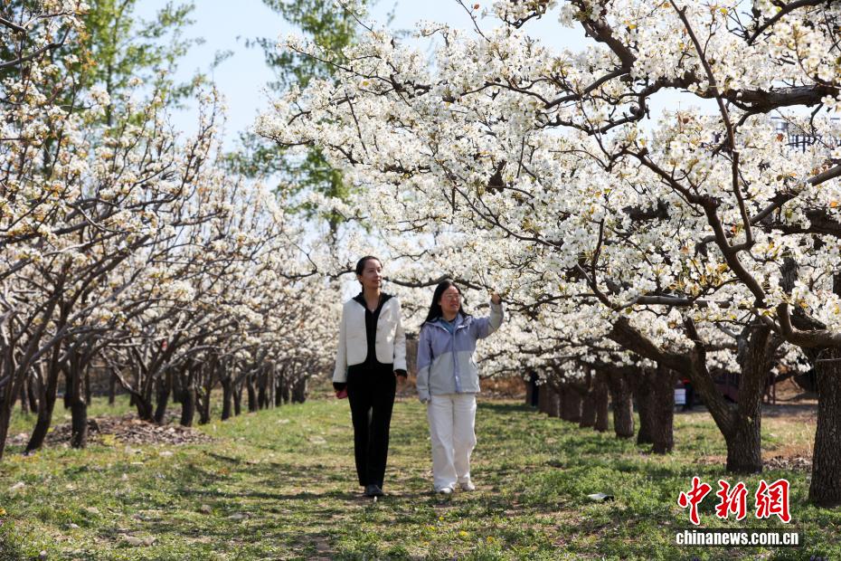 仲春时节,全国“十大最美农村路”——大运河堤顶路河北沧州段焕新姿。这条绿色“廊道”以盎然春意串联起生态美景、文化传承与民生幸福,成为市民游客踏青、健身、游览的好去处。图为4月7日,大运河堤顶路沧州段,游人在梨园赏花。